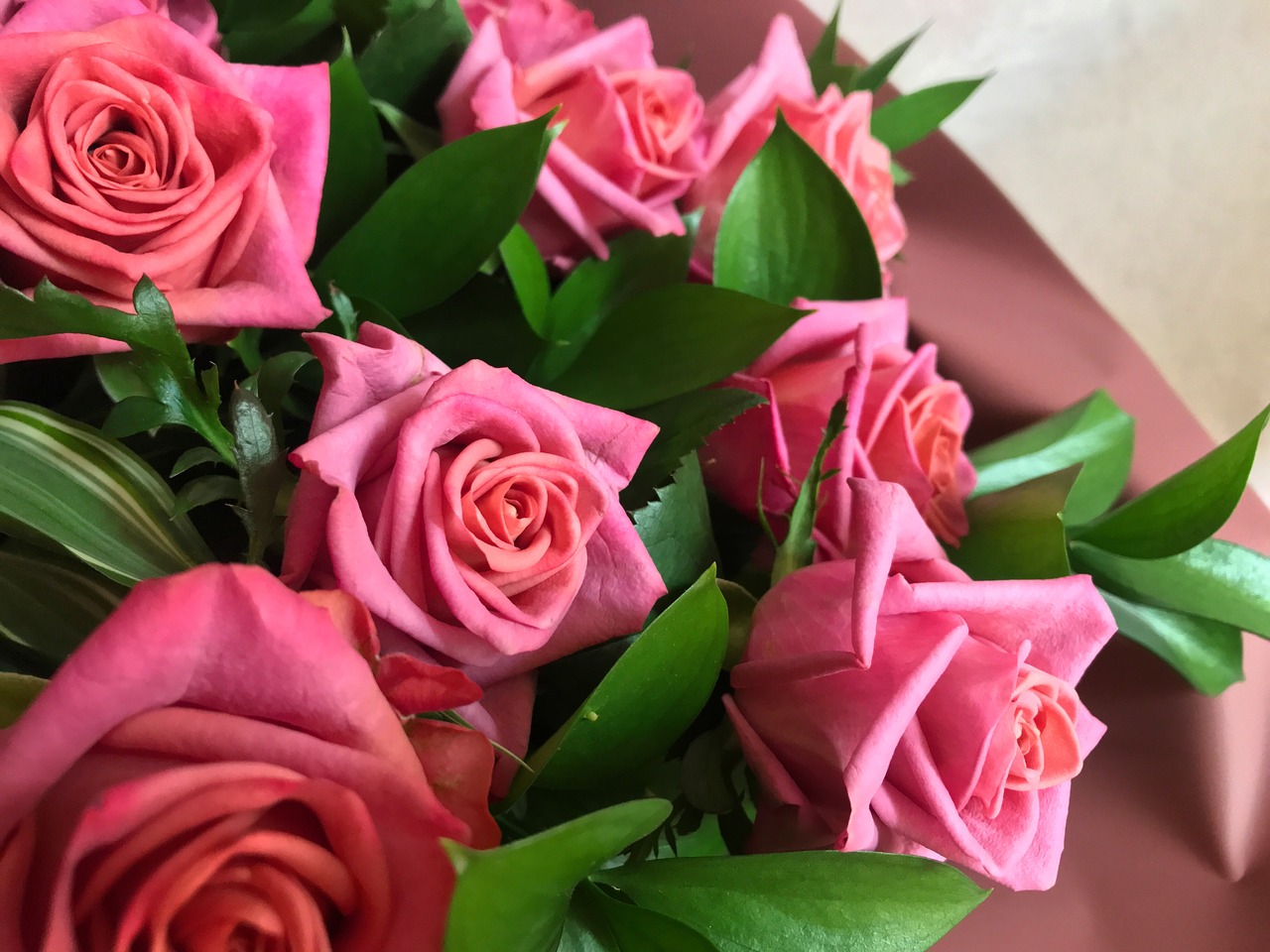 バラ10本とグリーンを合わせたシンプルな花束です。